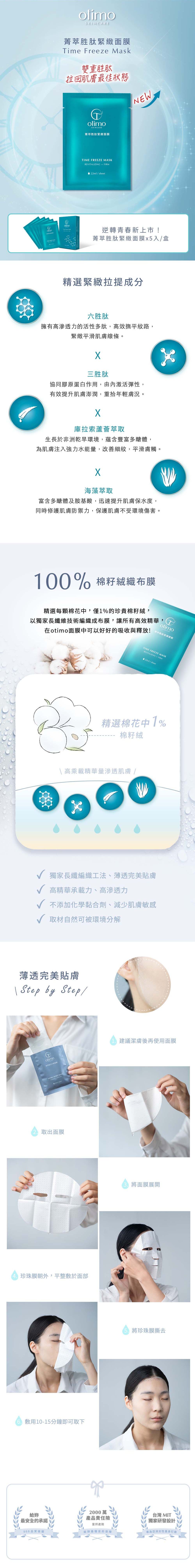 A highly-effective peptide formula can visibly smooth, firm , and reduce the look of fine lines and wrinkles. This mask is made with finest, silky, skin-fitting sheet to help active ingredients penetrate deeply for an instant youthful look.